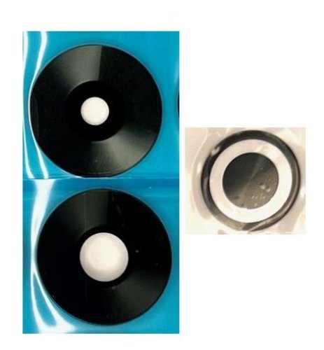 Komplet składa się z 3 sztuk szkieł. Dwa duże są z naniesioną fabryczną warstwą klejącą - trzecie oczko małe jest bez kleju.